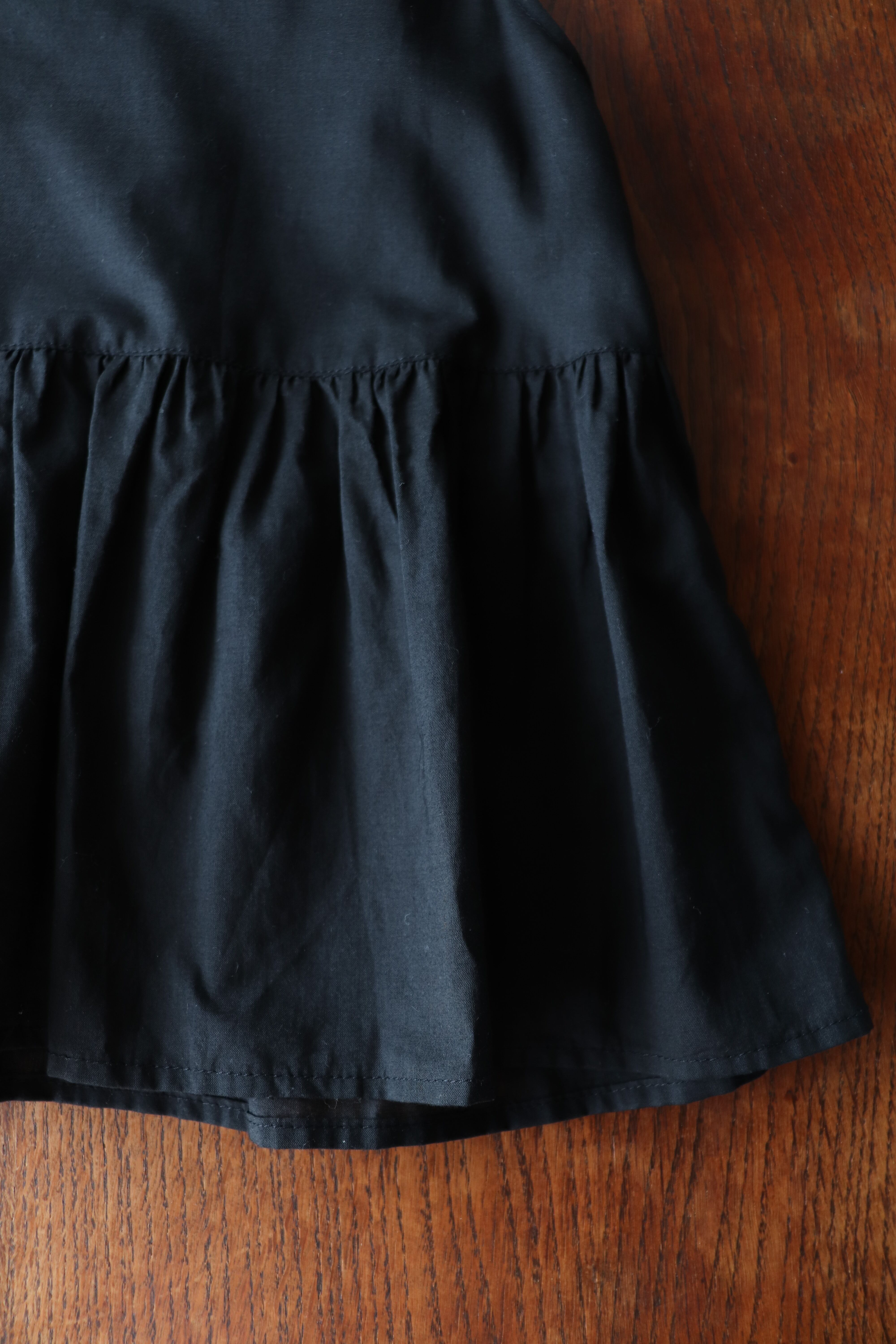 ウエストからAラインに広がるギャザーが